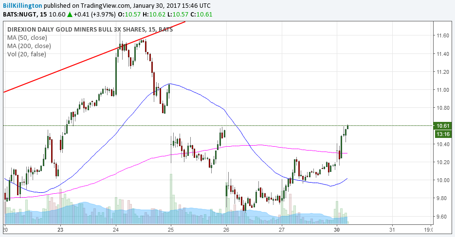 I decided not to second guess. Gold is going up and so I loaded some NUGT shares at $10.15.
